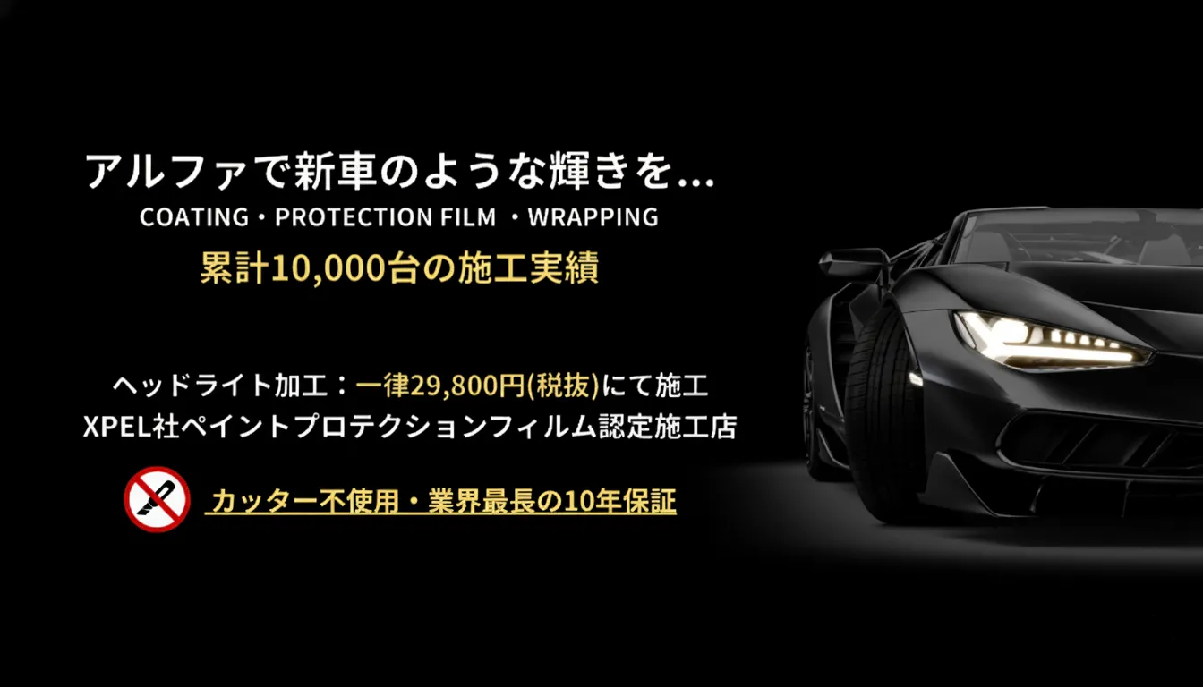 アルファは、カーコーティング、プロテクションフィルム、カーラッピングを行う