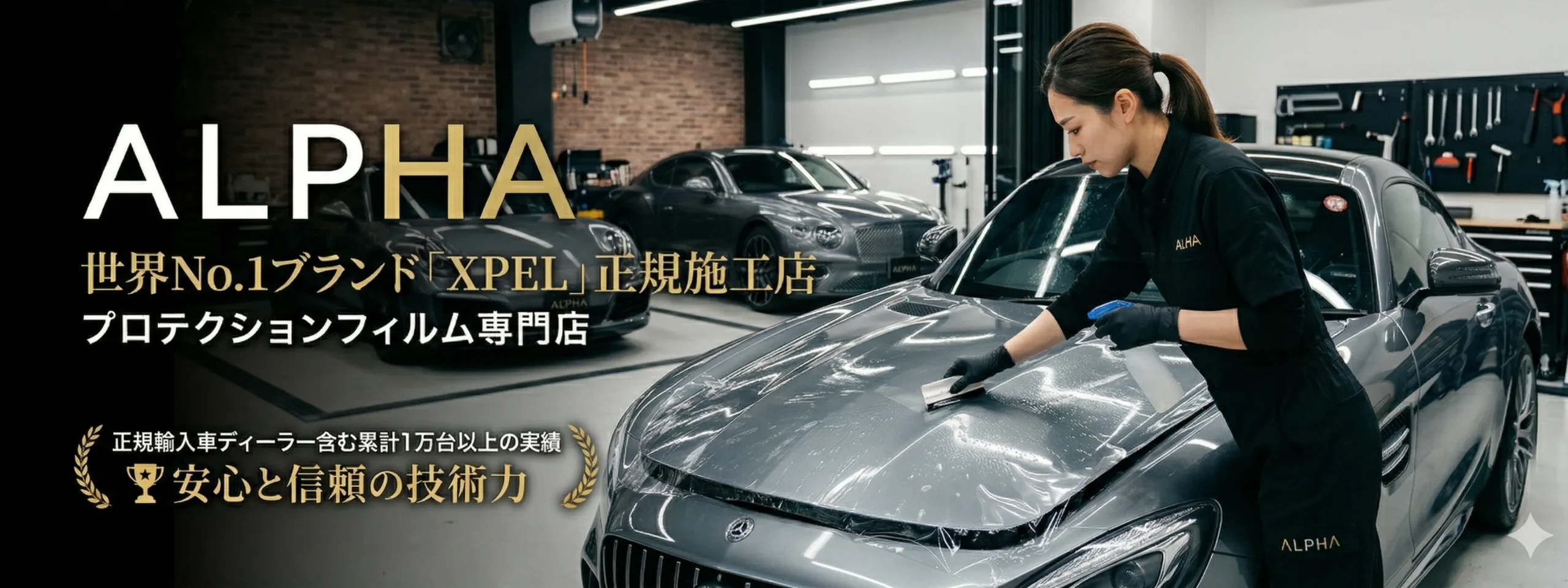 アルファの母体であるDOUBLE株式会社は、長年にわたり国内外の主要正規ディーラーの専属パートナーとして、数多くの高級車の施工を手掛けてきました。